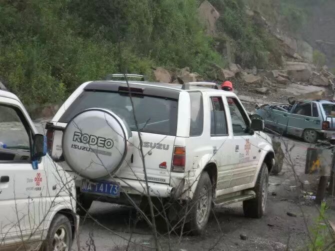 馬吉光、鮮軍帶隊在距映秀鎮(zhèn)3km的地方用OTDR測試光纜,查找故障點,又一次余震開始,山頂飛石向他們砸來,發(fā)現(xiàn)這個情況的觀察人員大吼一聲:“快跑”。搶險人員剛跑開,一塊直徑40cm的飛石砸向便攜式發(fā)電機。在搶險人員跑開的過程中,山上不停的有石塊飛滾而下。搶險人員在生命受到威脅的時候并沒有放棄手中搶險的重要設(shè)備:熔接機和OTDR,可以說人在設(shè)備在。