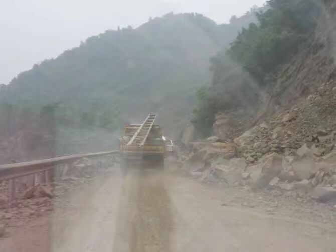 18日的返程路上,搶修車為了讓一輛大型挖掘機盡快趕往災(zāi)區(qū),避讓到受損的橋上,在挖掘機后,一大對大噸位的救災(zāi)運輸車魚慣而過,持續(xù)了10多分鐘,橋在顫抖,隊員們的心在顫抖。就在搶險車過了不久,后方滑坡了。